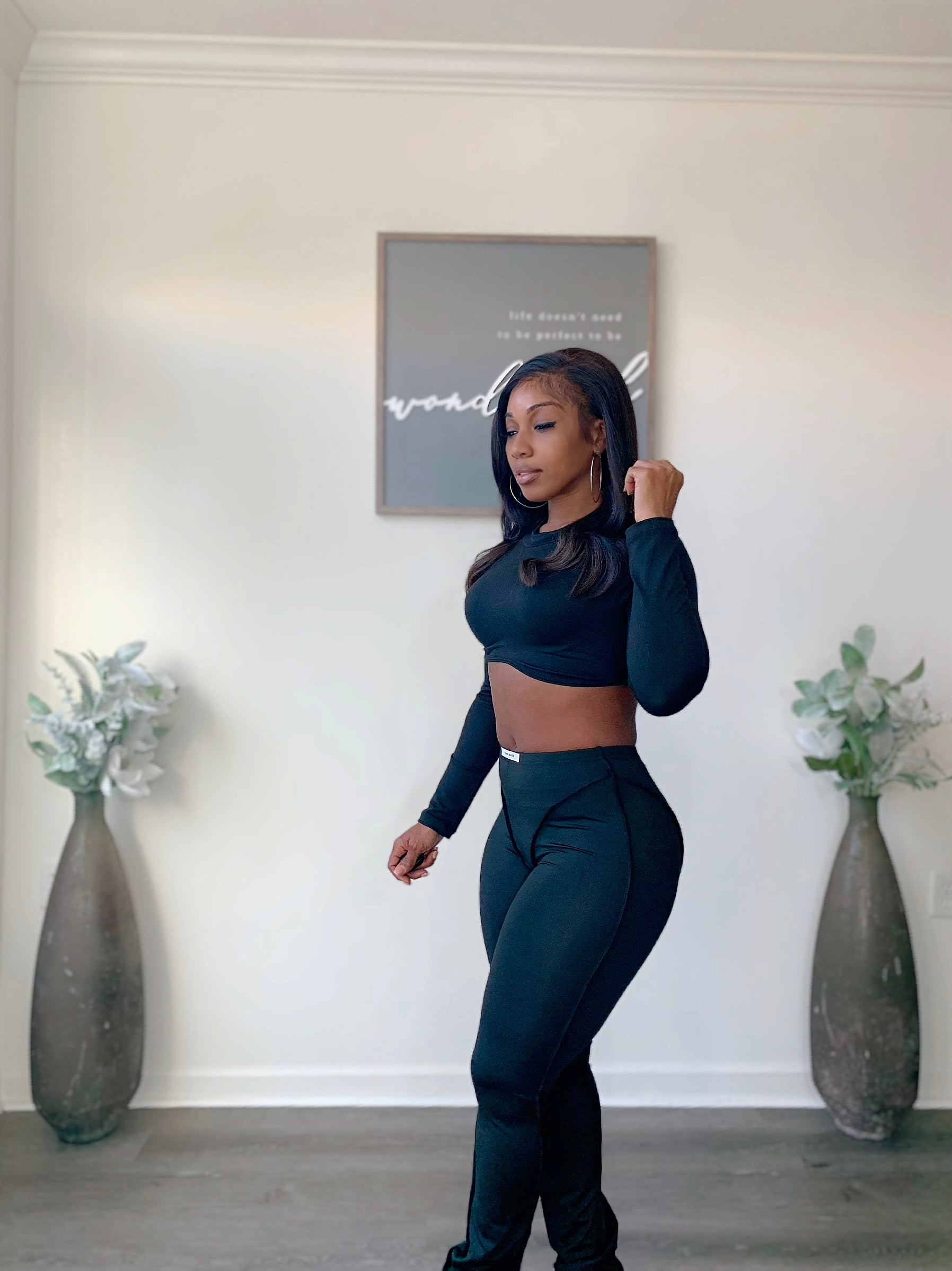 High waist stitch pants