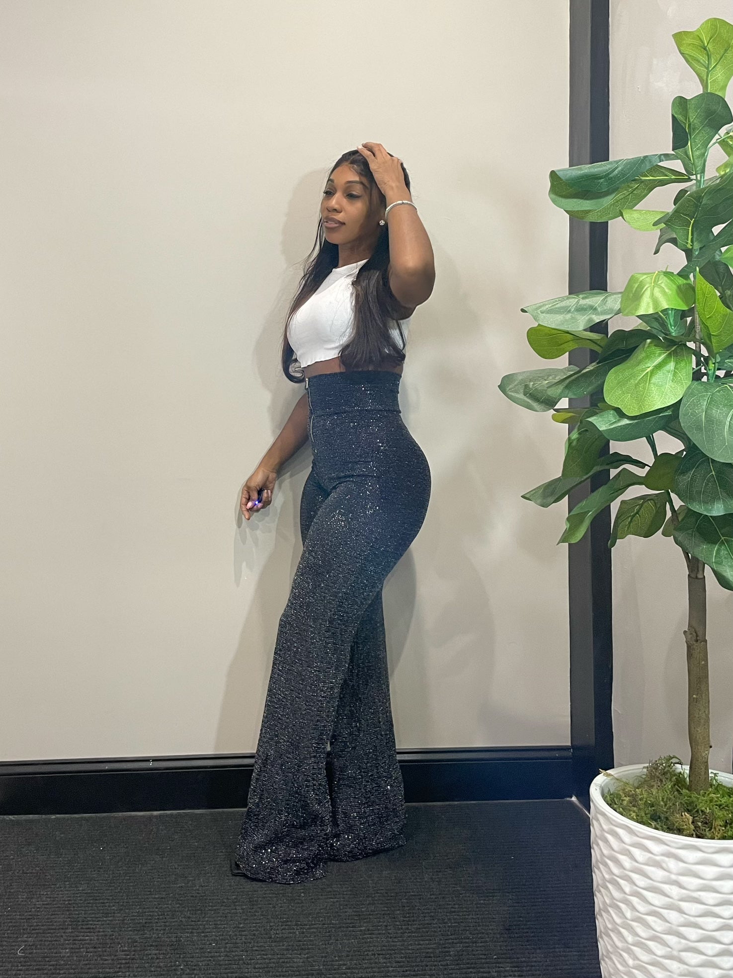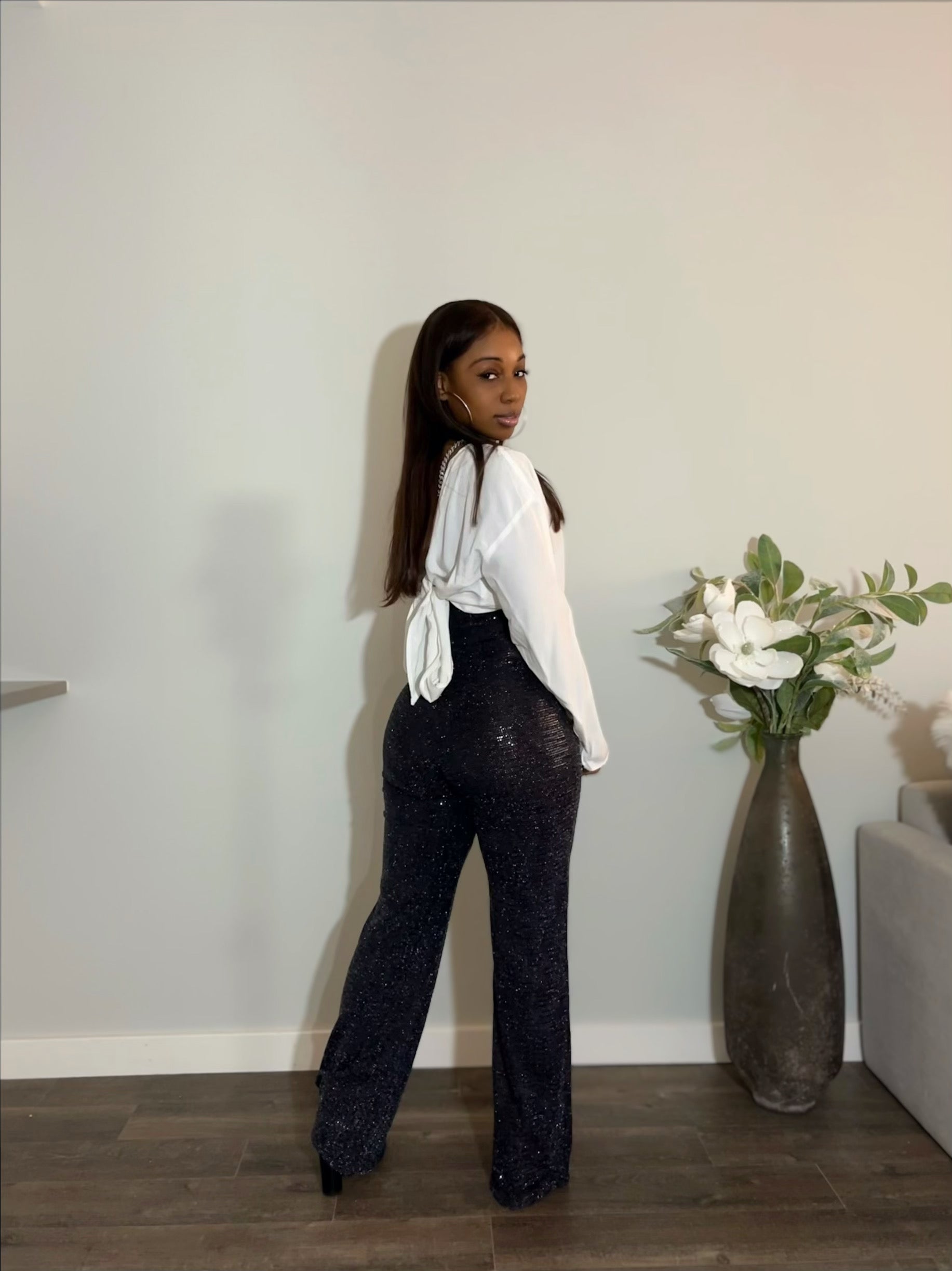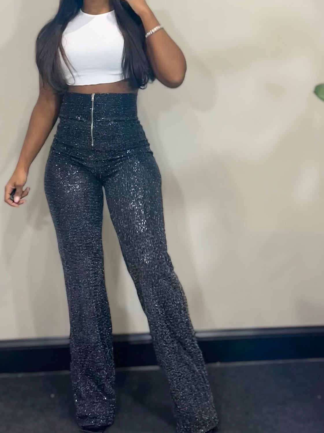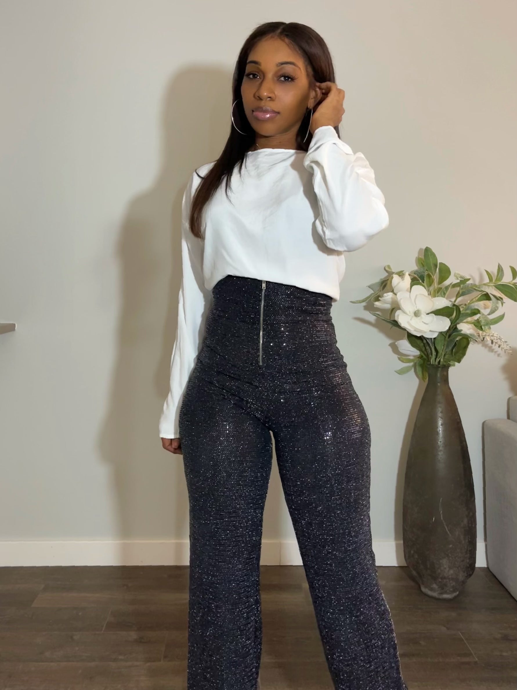 Shimmered high waist pants